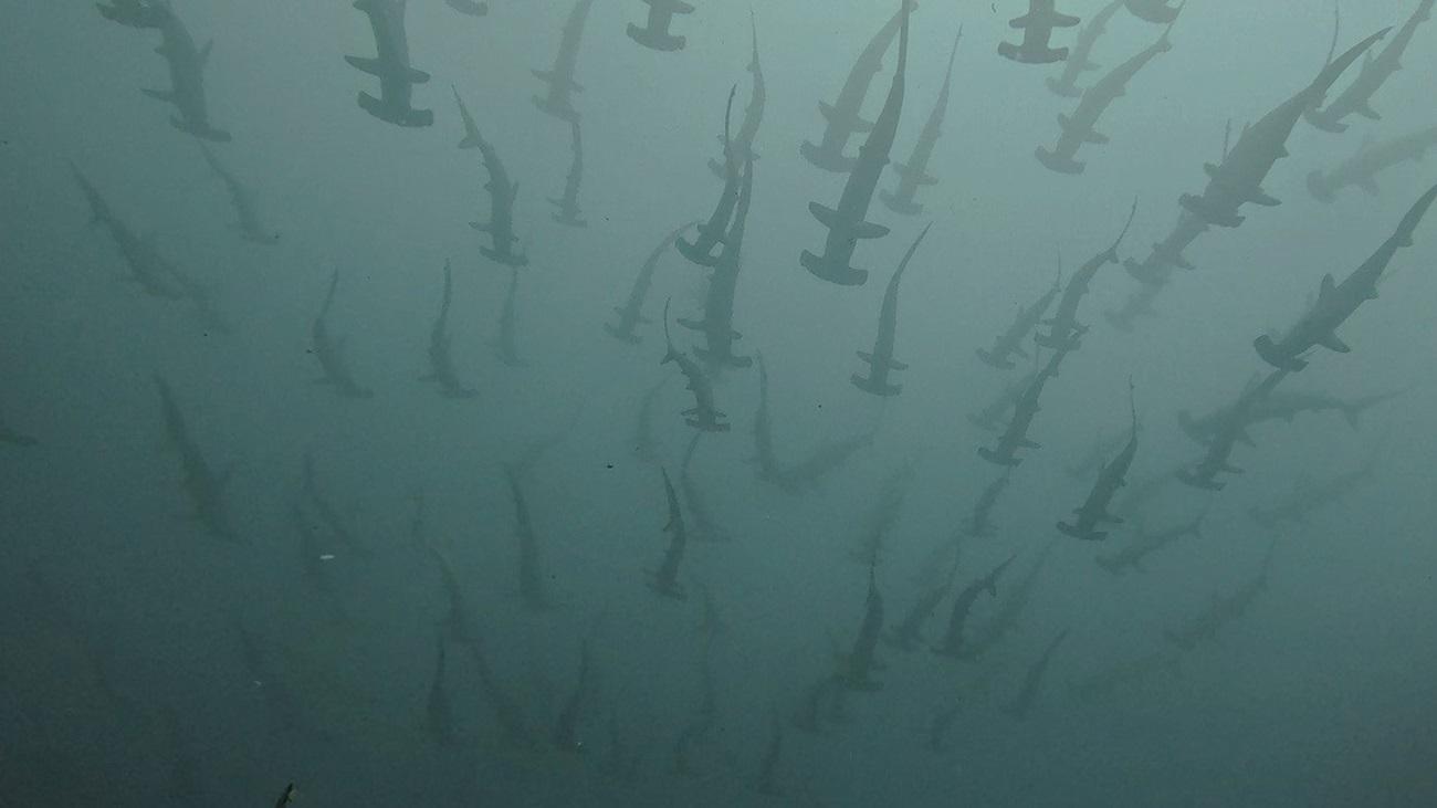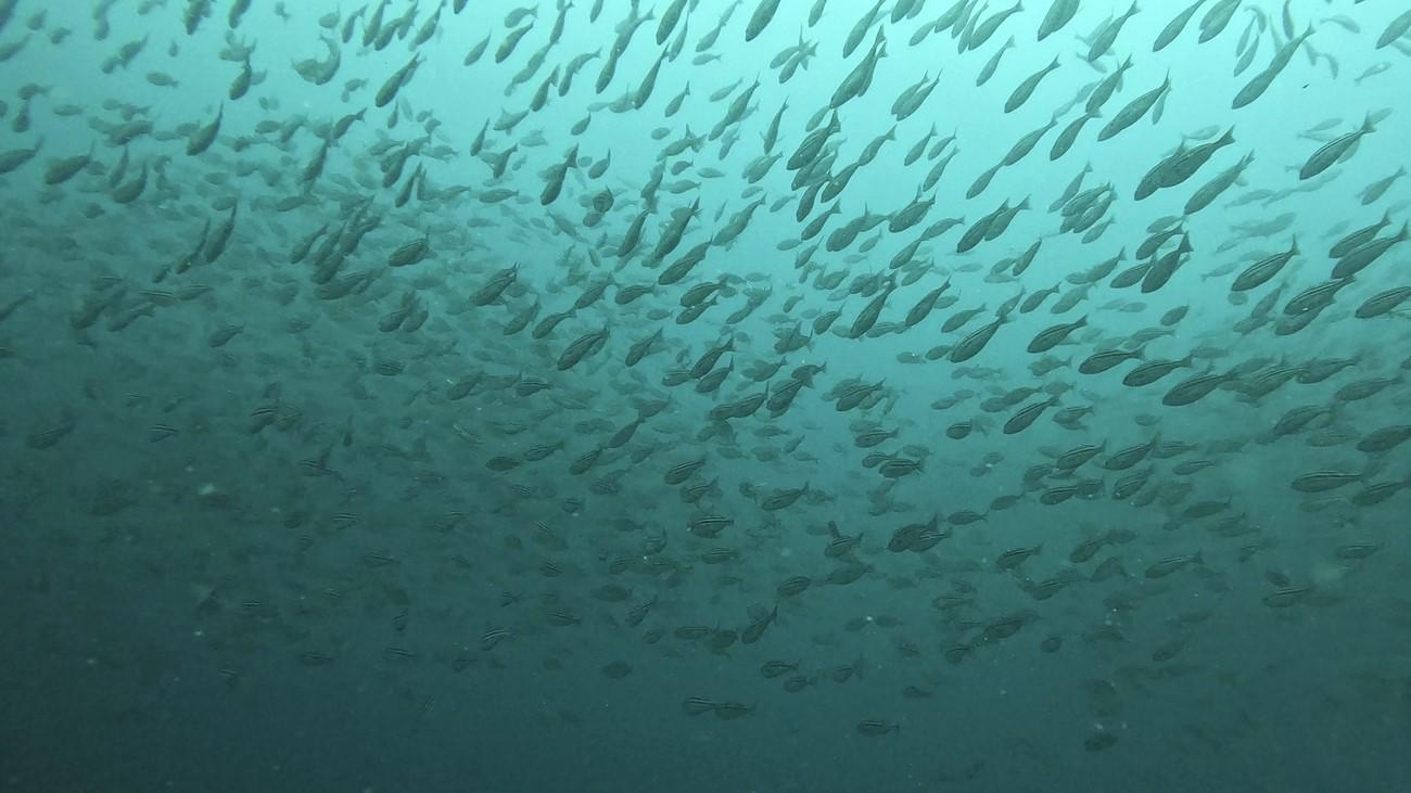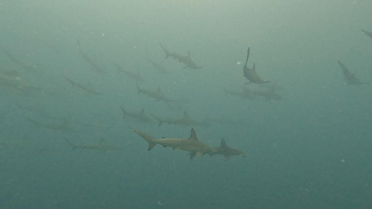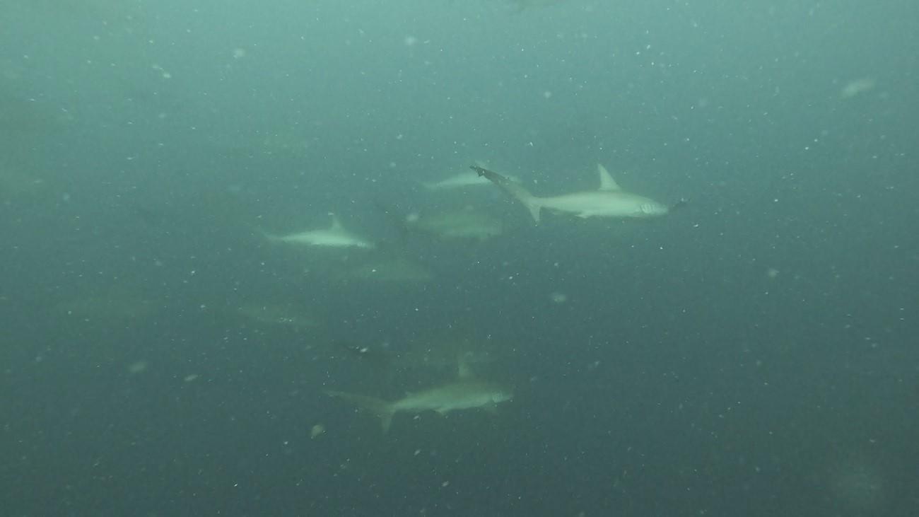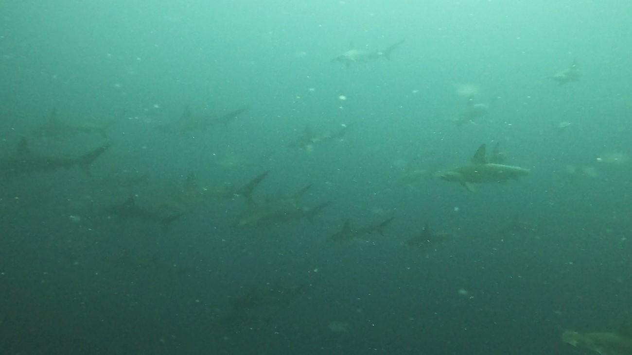 本日も無難にハンマーの群れに遭遇!濁りで全貌をとらえられませんでしたがかなりの数!