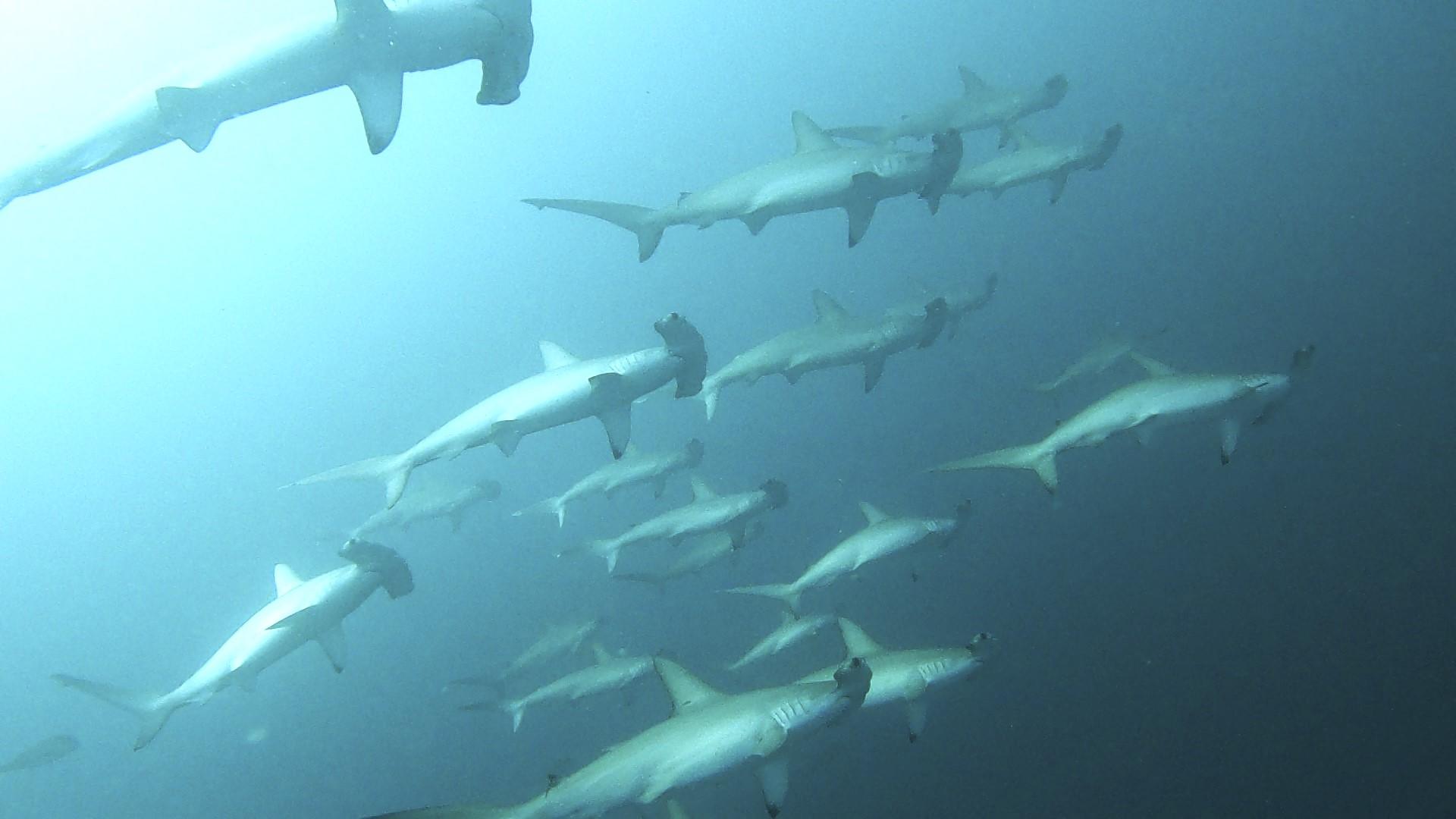 そんな本日もハンマーは各ダイブで大群れに遭遇できました。根待ちで見たり並泳したり、下層で出たり上層で出たりと神出鬼没の群れでした。