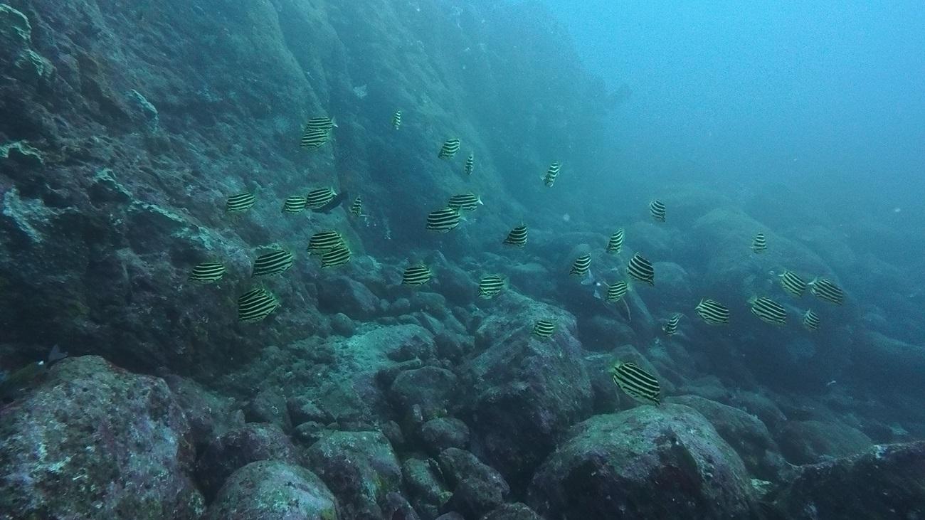 タカベ大玉やイサキの群れ、ウスバハギの大群れタカサゴの群れやメジナの群れ等魚影が濃く楽しめました。シラコダイが爆群れ中で魚影ファンの方に見てほしい光景です。