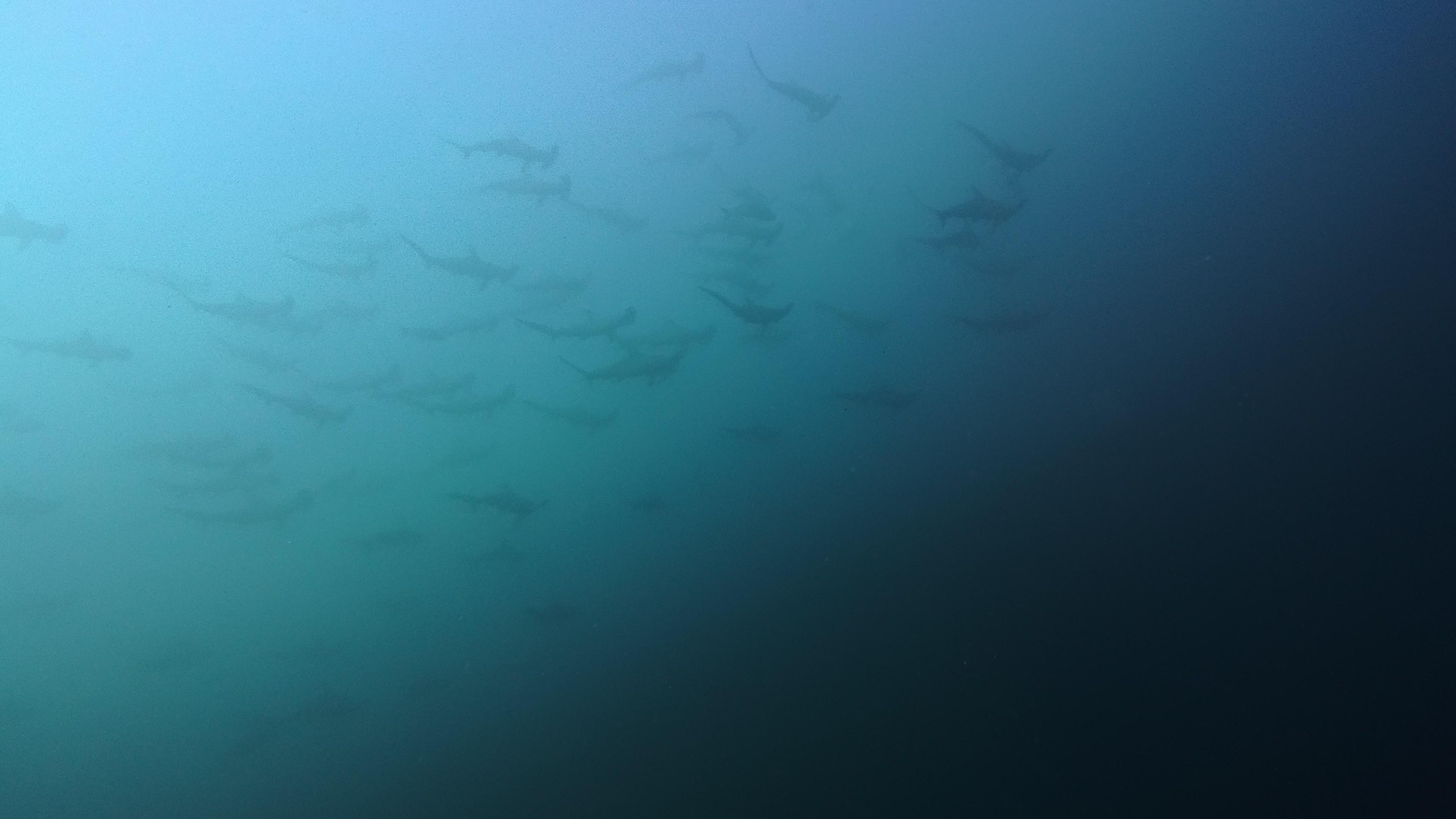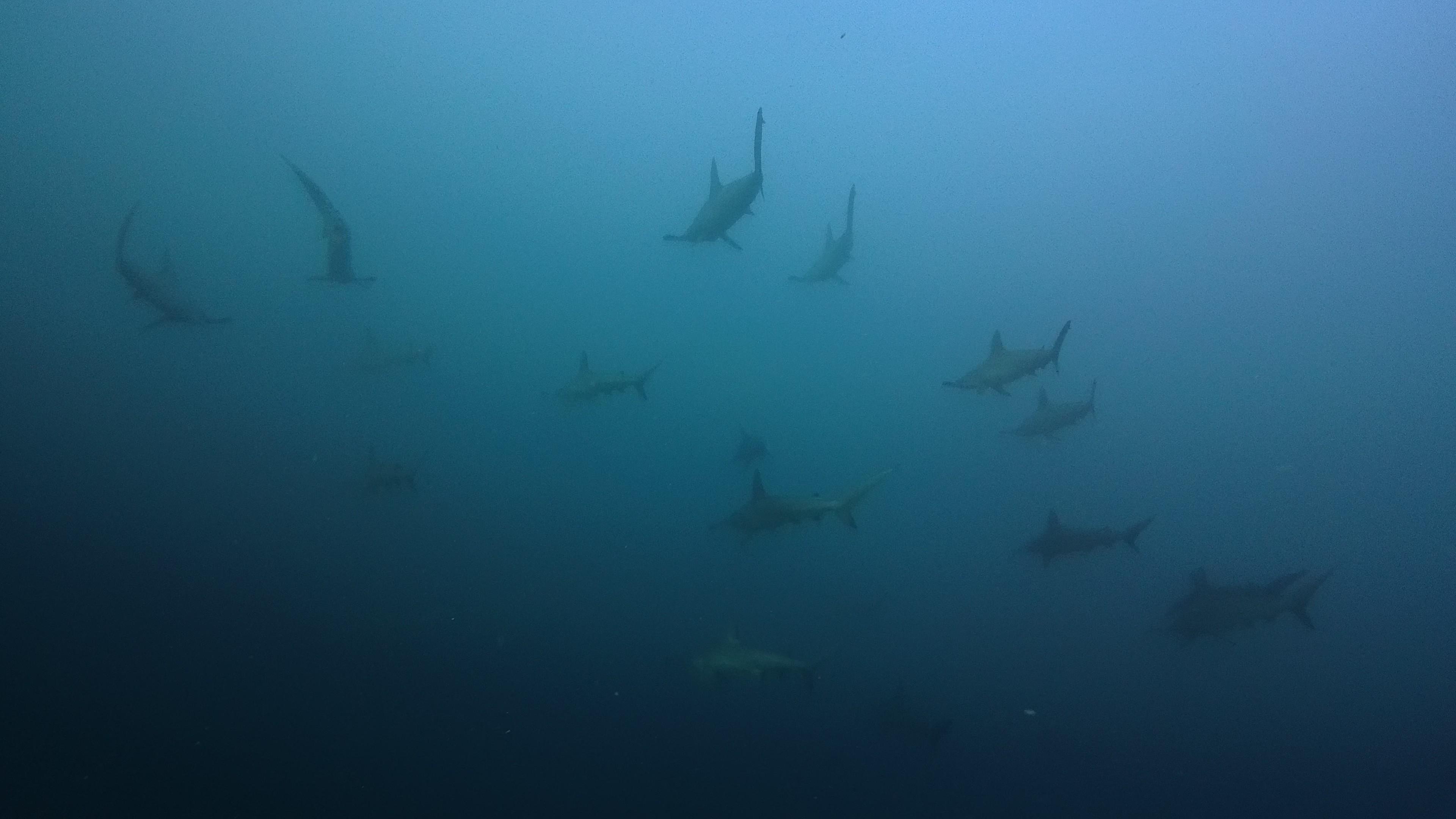 下を見るとオオニベの群れ、見上げるとハンマーの群れ!!