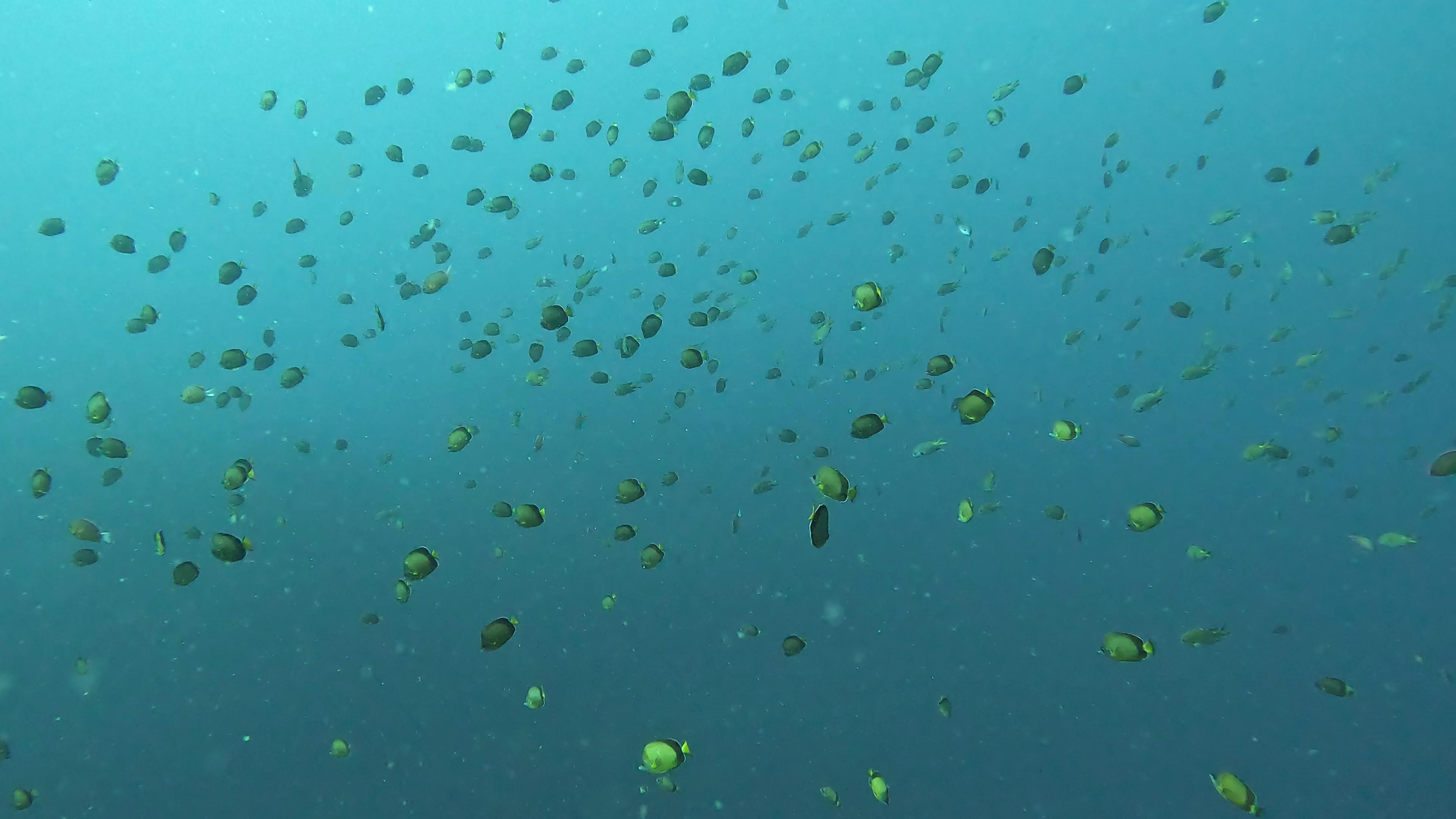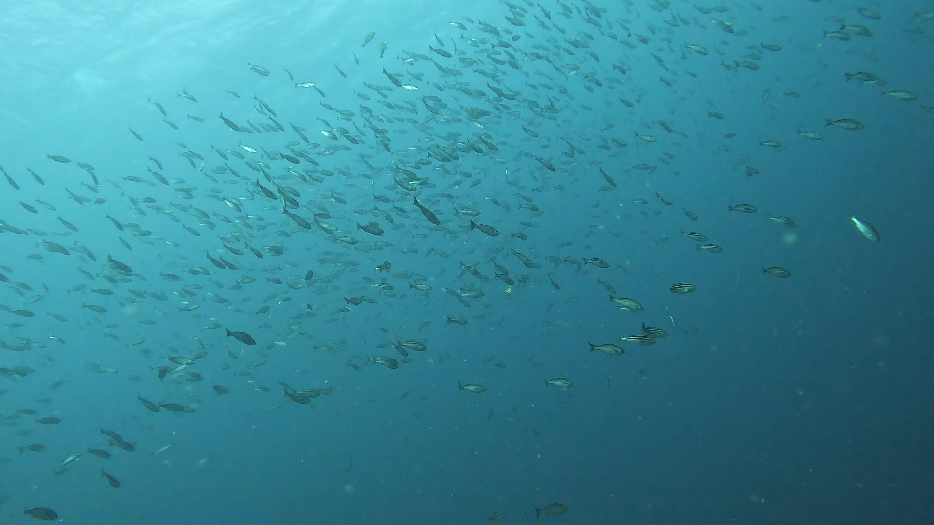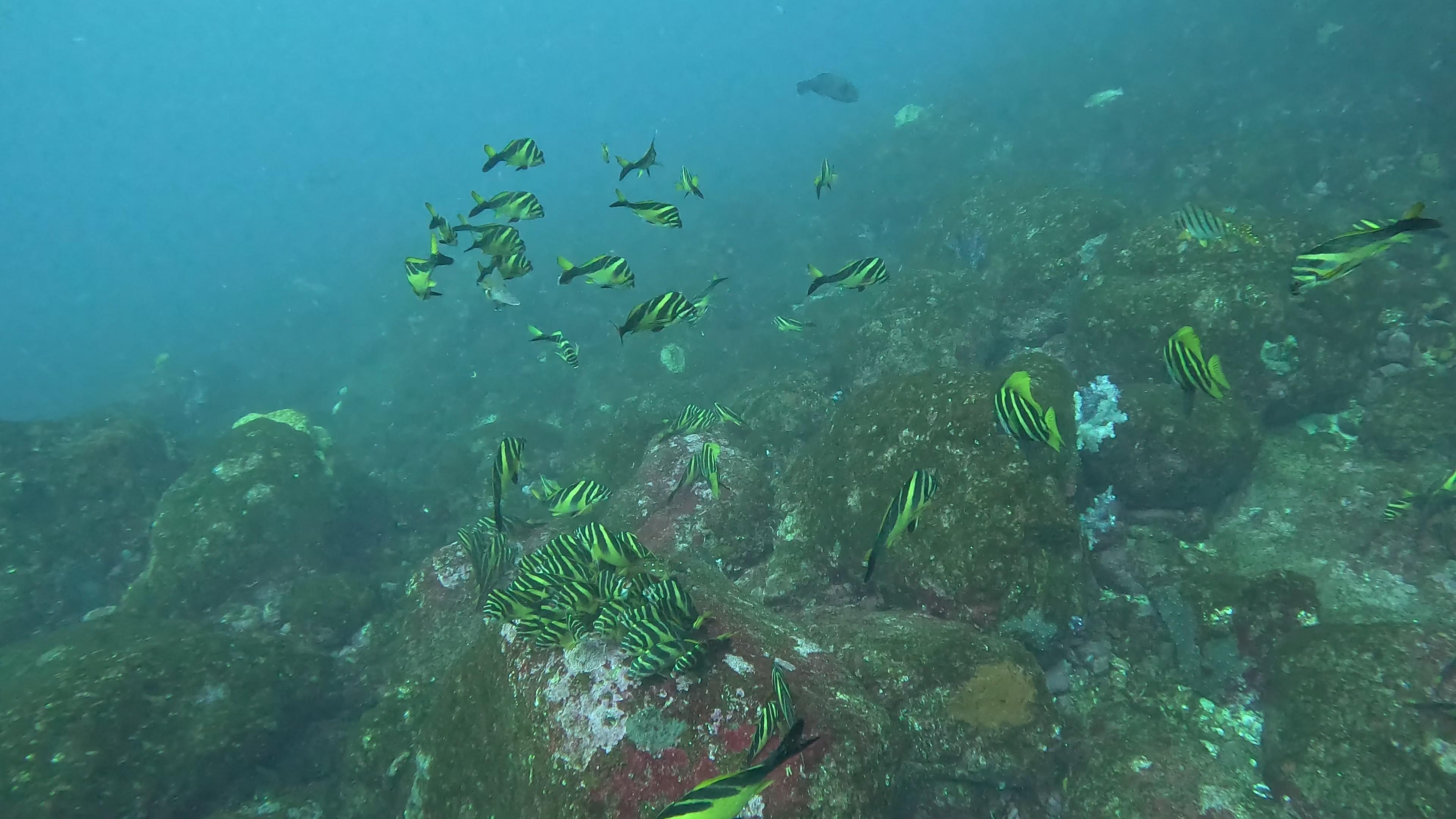 メジナ、キンギョハナダイ、シラコダイ、などのたくさんの魚が群れを成し、