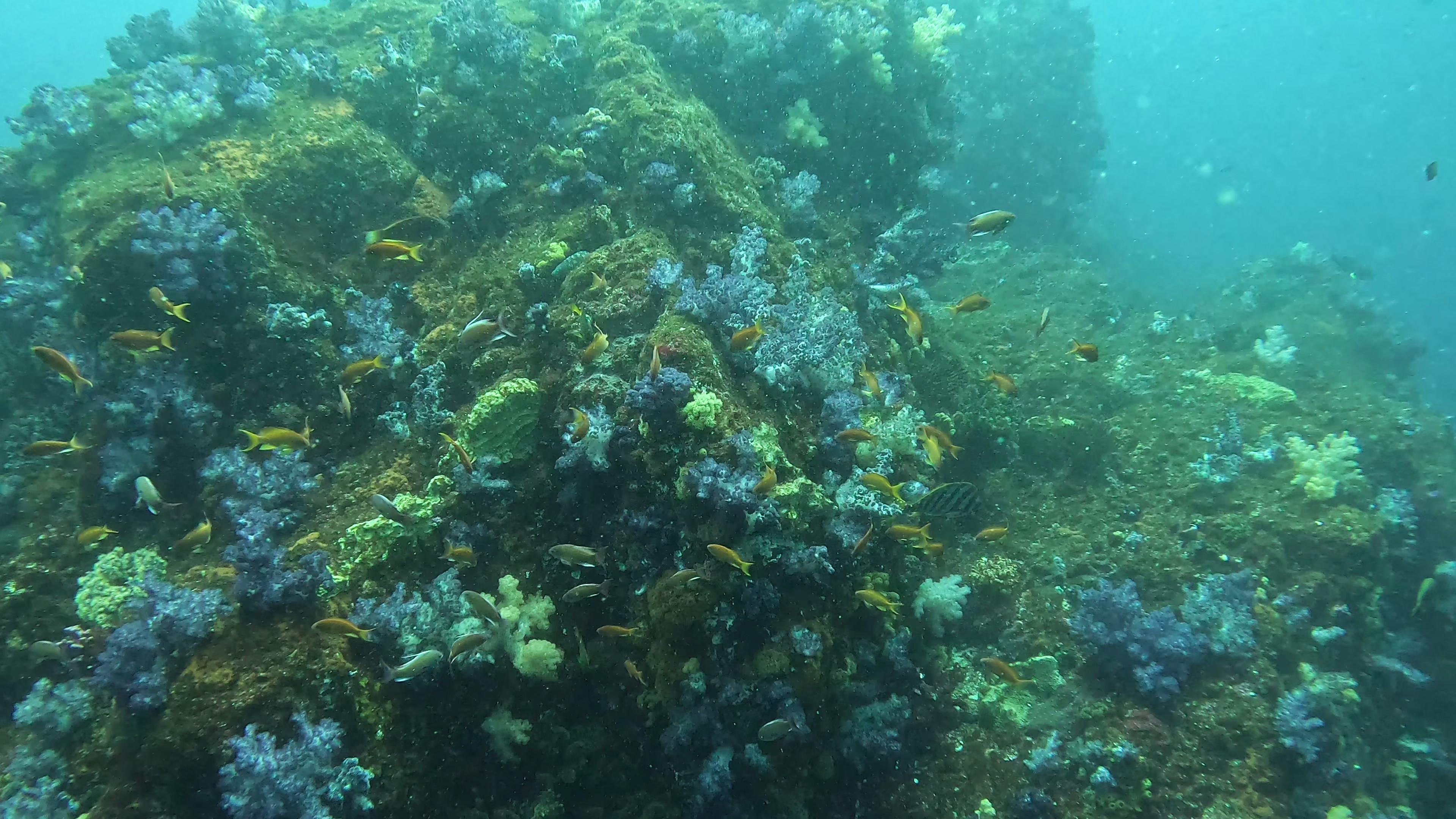色鮮やかなソフトコーラルが広がる根周りには、