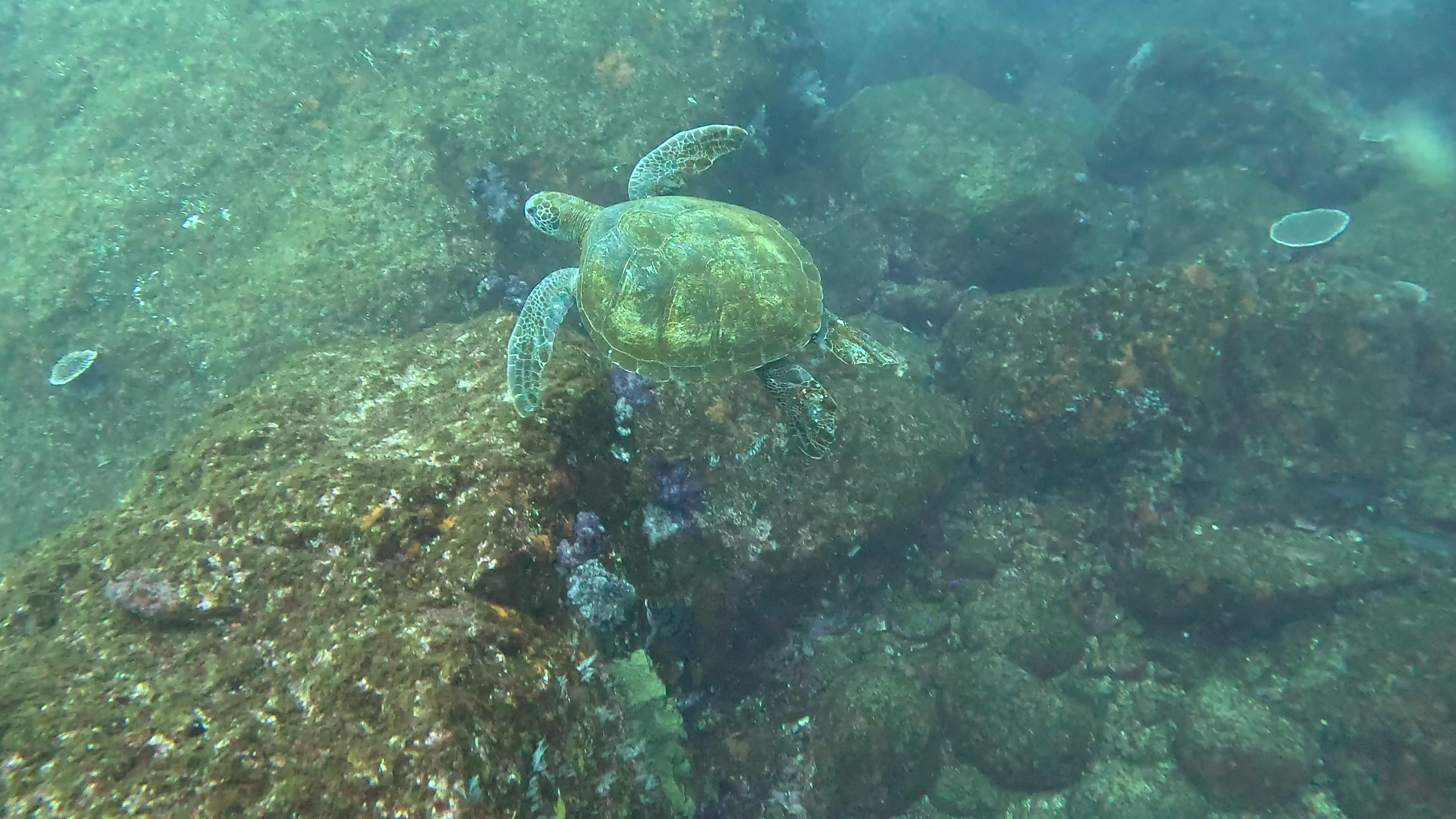 かわいいアオウミガメ、大きなクエ、テングダイのペアなどのおなじみのメンバーや