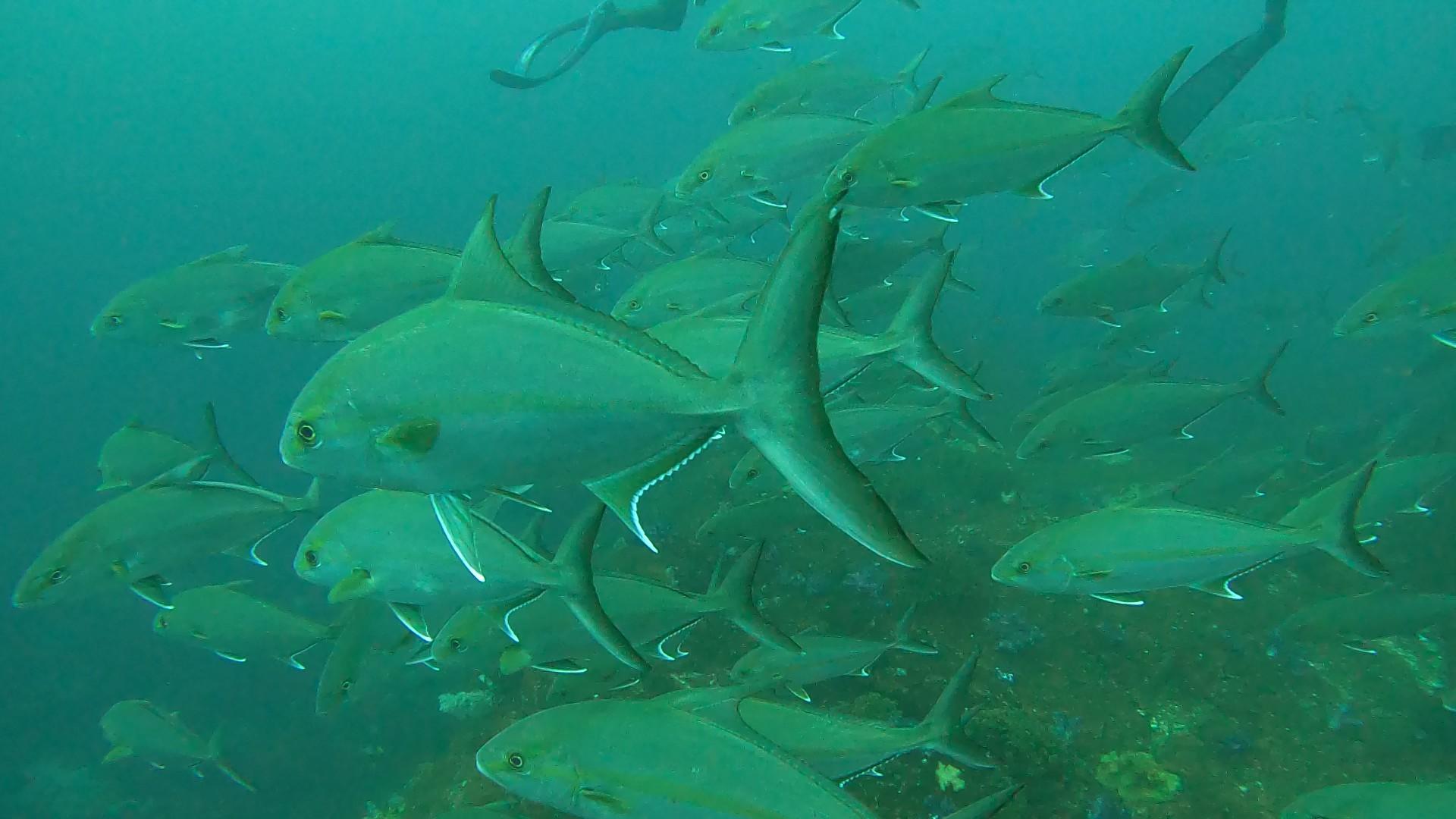 オオニベの大群が、川の如く押し寄せてきたり、根の傍でたくさん集まっていたり、