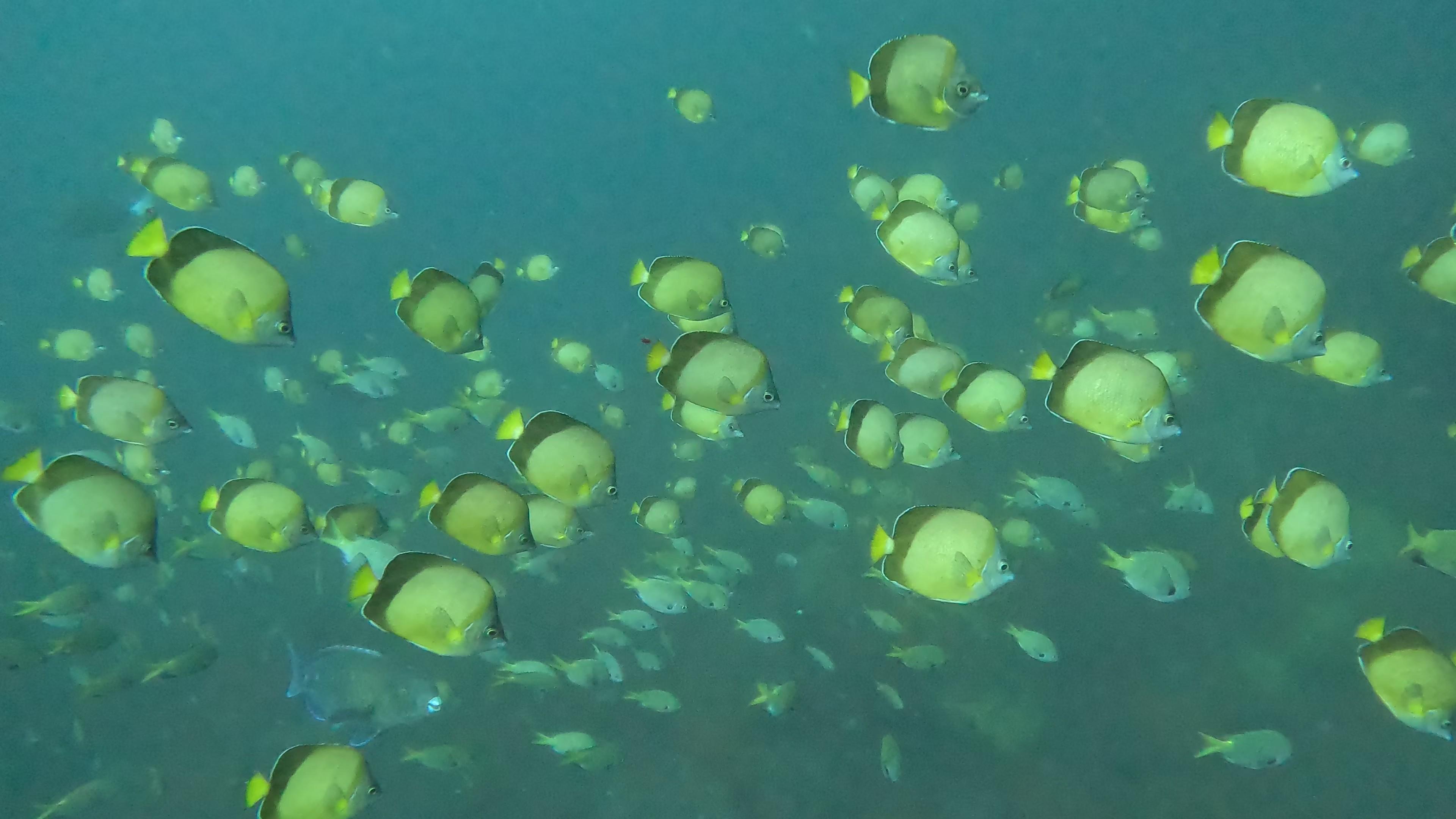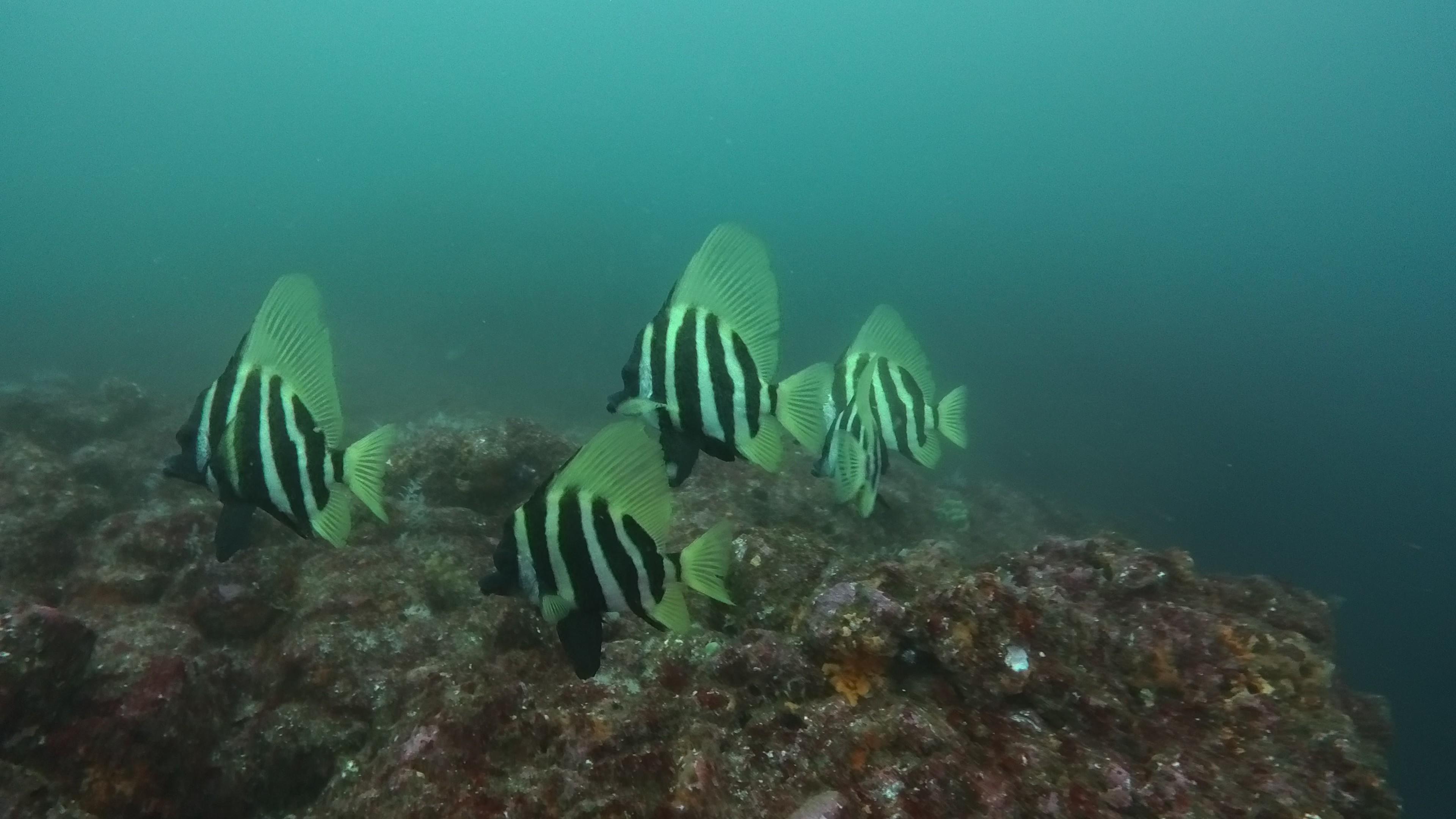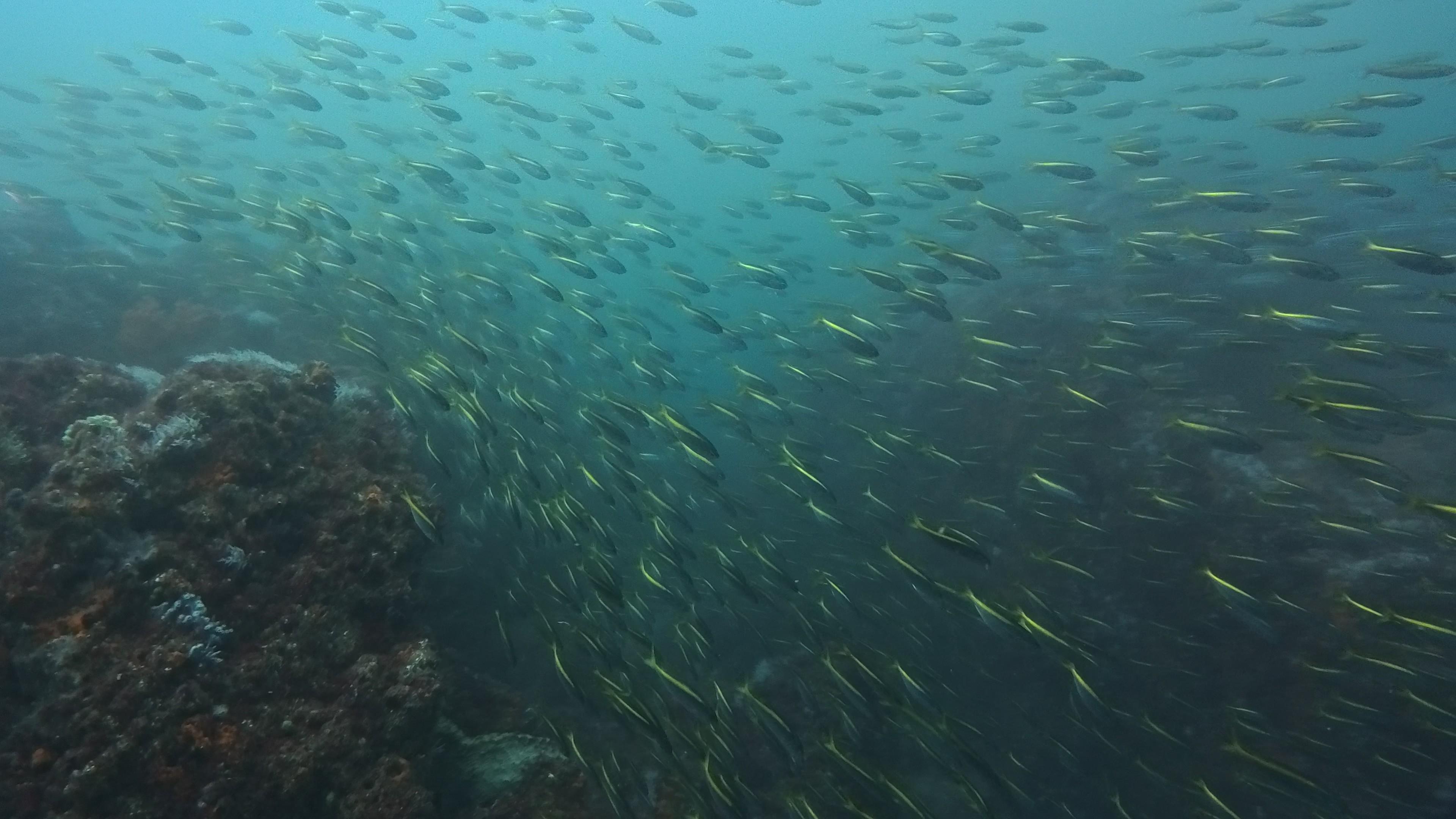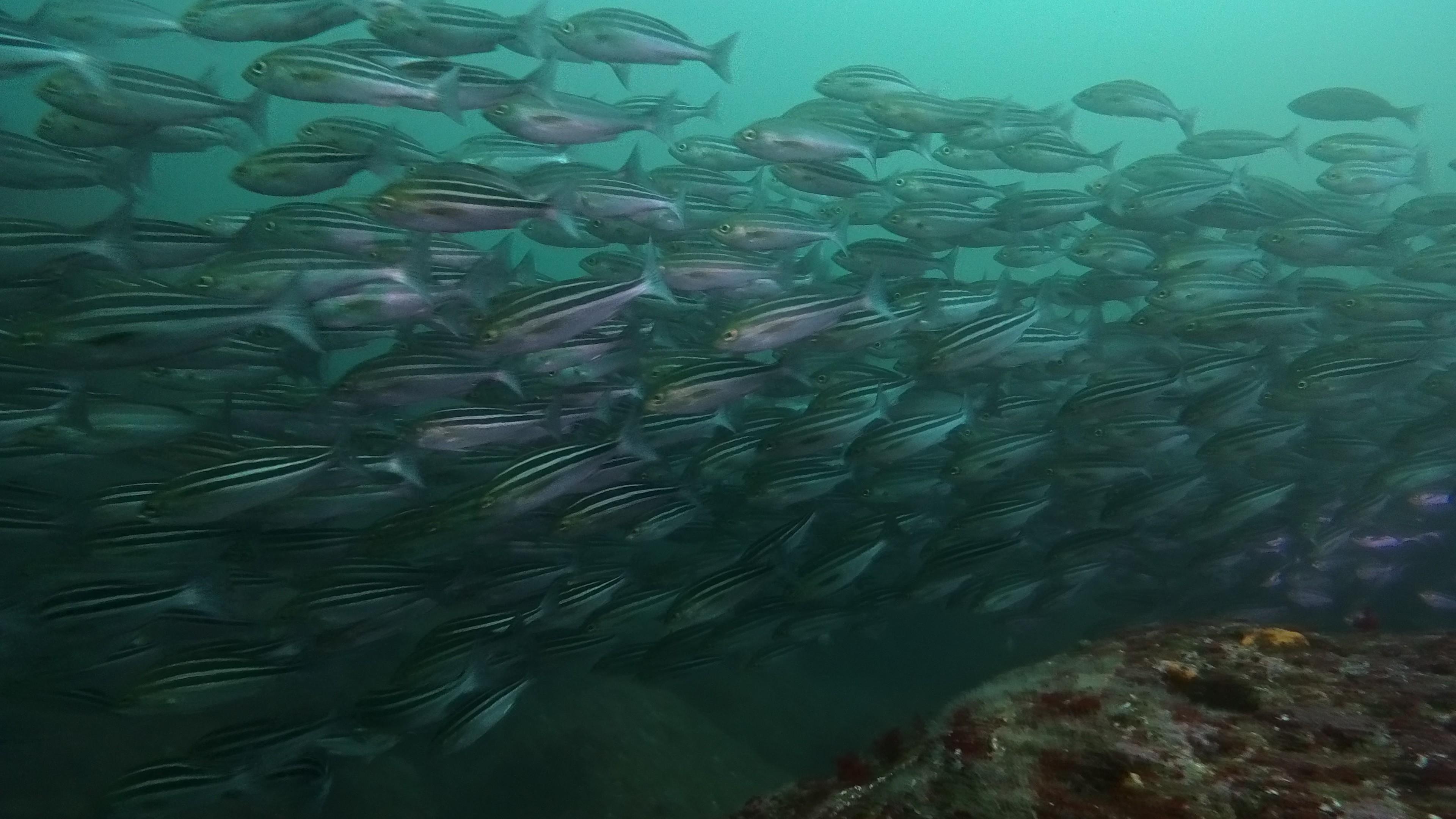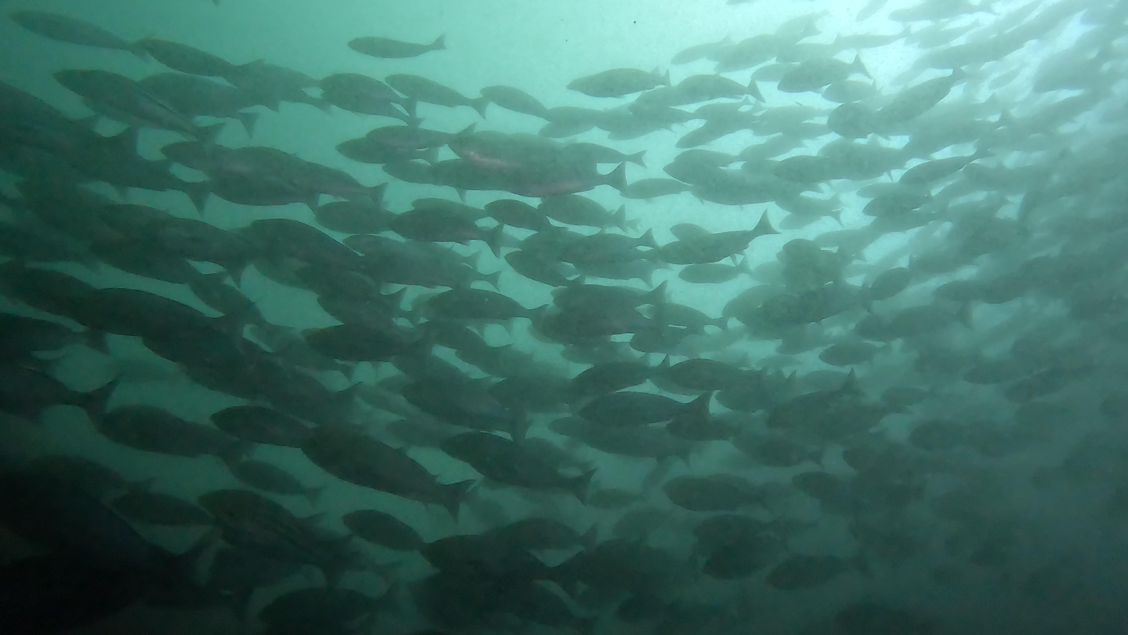 これまた今日は高密度で大群のシラコダイ群れや、メジナやニザダイの群れ、