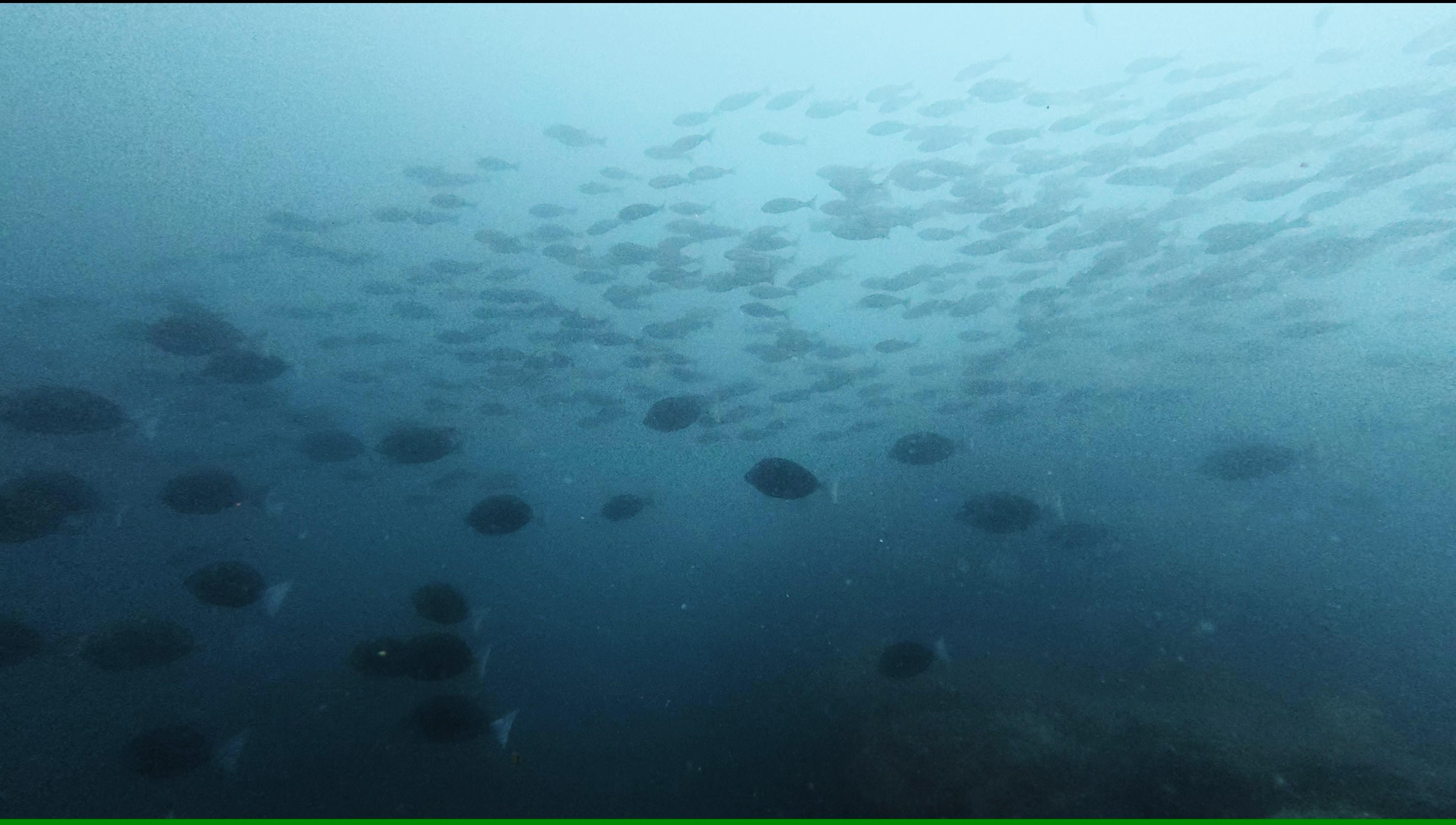 イサキ群れ、タカベ群れ、メジナやニザダイの群れも、