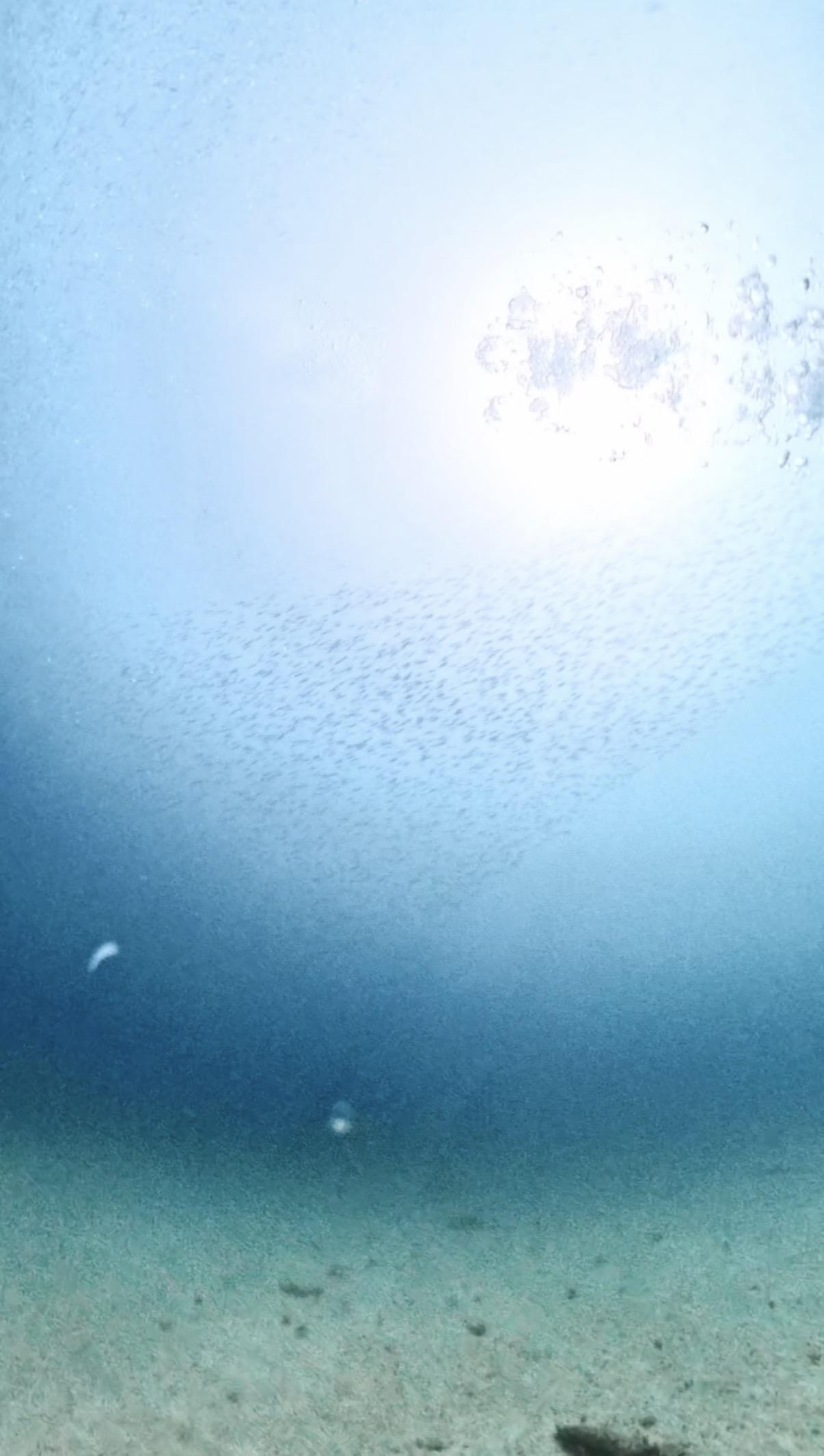 もの凄い数とスケールの大きさで、進んでも進んでも前も左右もずっとキビナゴです。